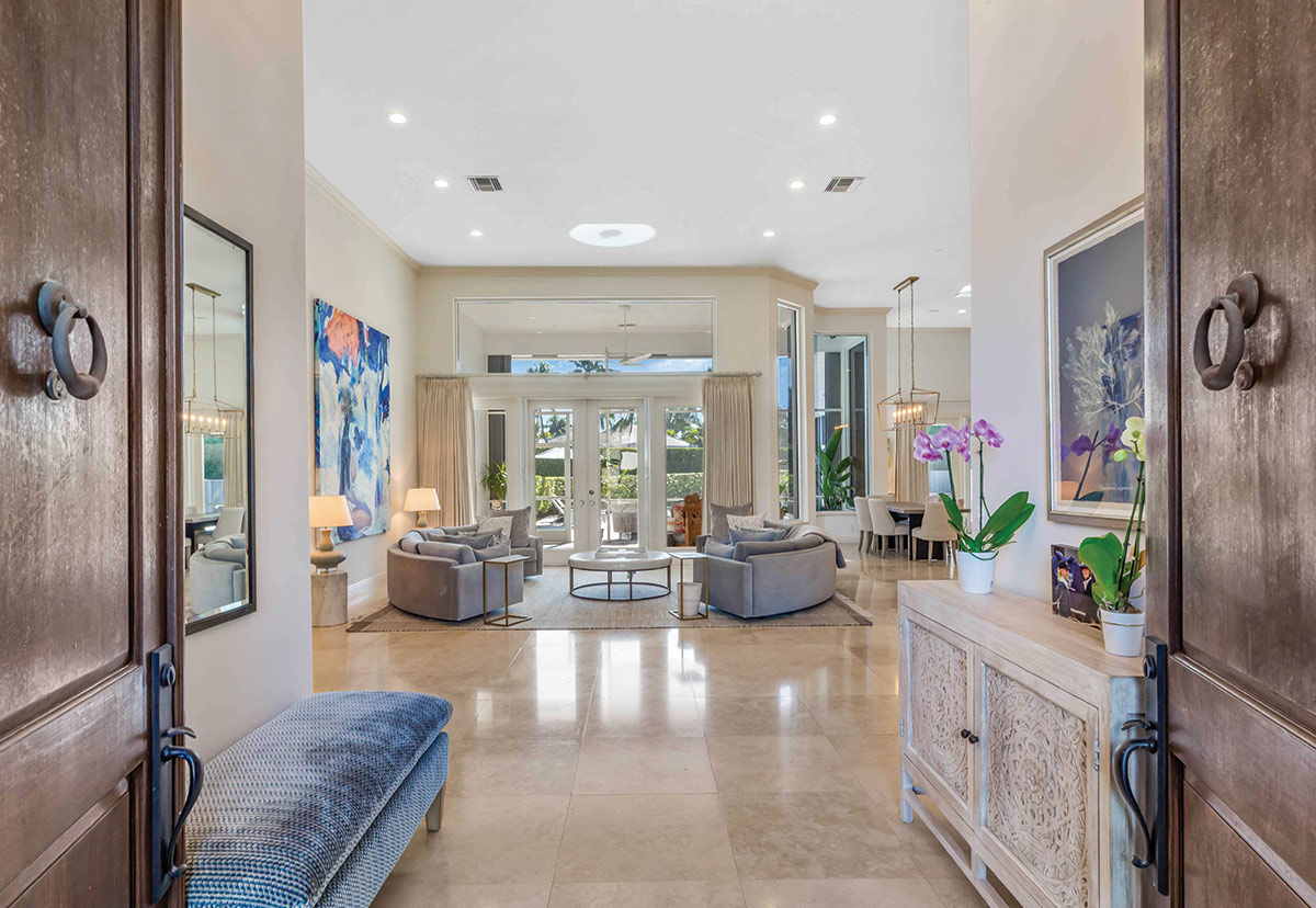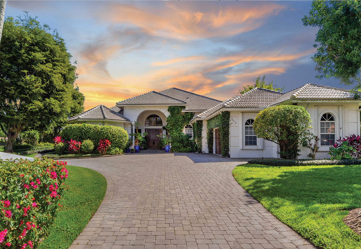 Stunning corner lot in The Equestrian Club Estates. Experience the ultimate in equestrian living. Exceptional 3bedroom/3.1bathroom with 3 car garage. Situated on approximately 0.6 acres just steps away from the Palm Beach International Equestrian Center.The grand entrance features a picturesque circular driveway, setting the tone for the beautiful gardens and lush landscaping that surround the property. Inside, discover a split floor plan with a private master wing, complete with his and hers closets, dual sinks, and a luxurious dual-entry shower. Two additional bedrooms and two bathrooms are tucked away in a separate wing, perfect for guests or family members.Enjoy the high-quality finishes, including marble and wood flooring, a wood-paneled.